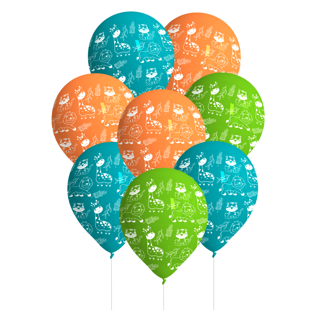 8 GLOBOS LATEX 27 CM JUNGLE ANIMALS