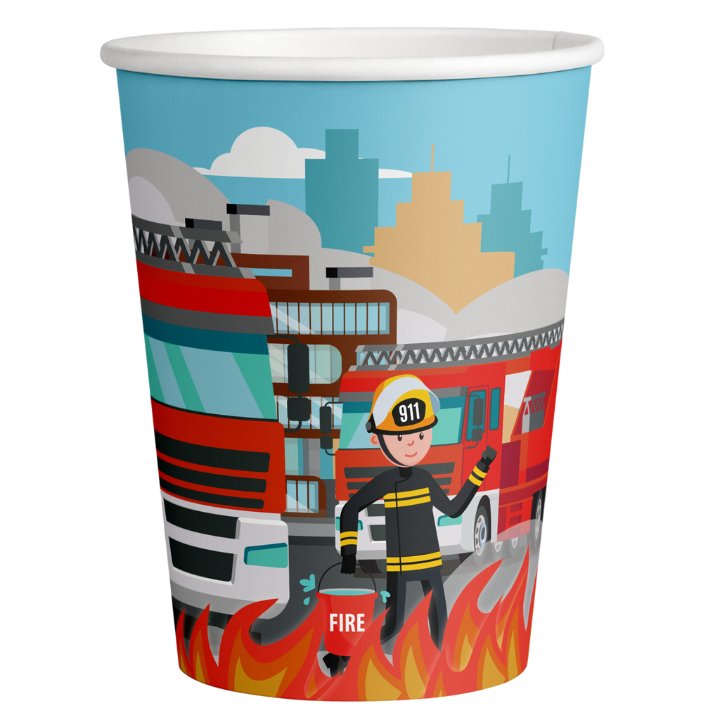 8 VASOS 250 ML FLAMING FIRE TRUCK