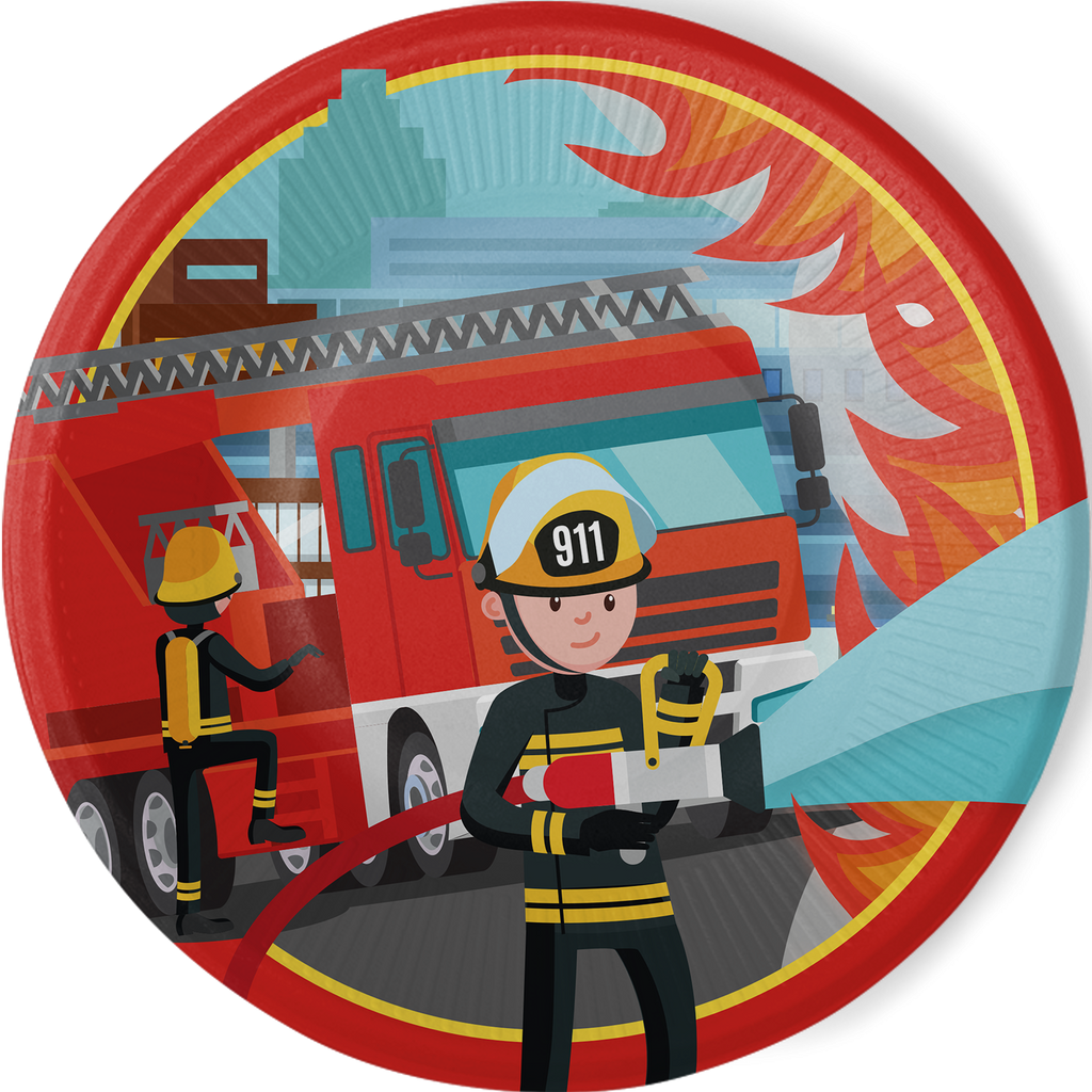 8 PLATOS 23 CM FLAMING FIRE TRUCK